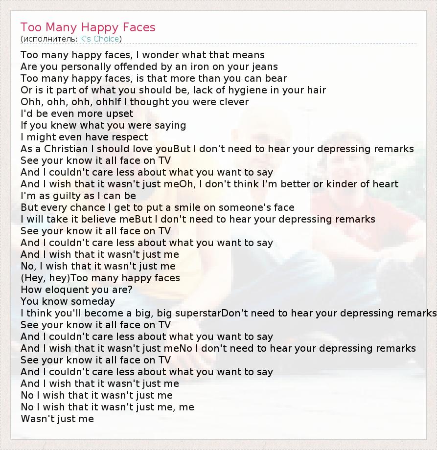 А как ты думаешь, о чем песня "Too Many Happy Faces" ?