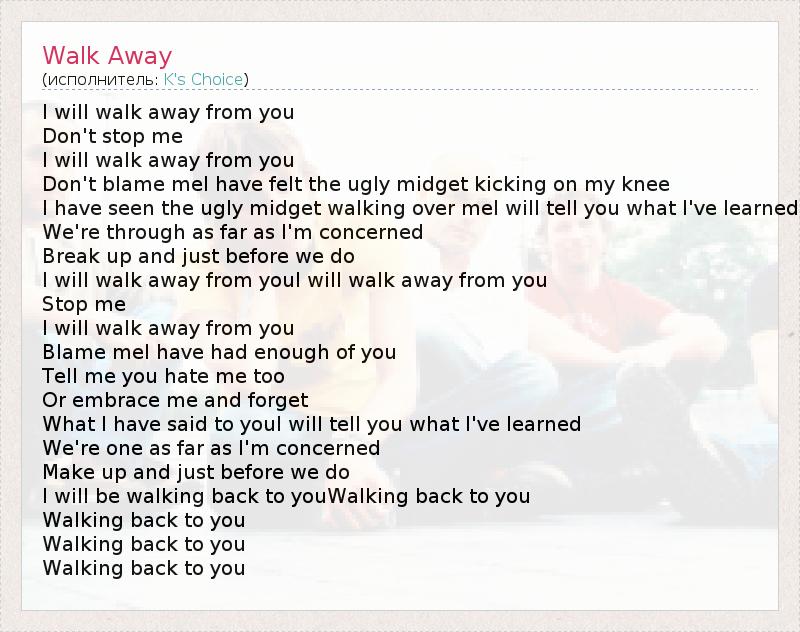 I will walk away from you