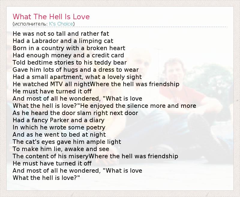 А как ты думаешь, о чем песня "What The Hell Is Love" ?