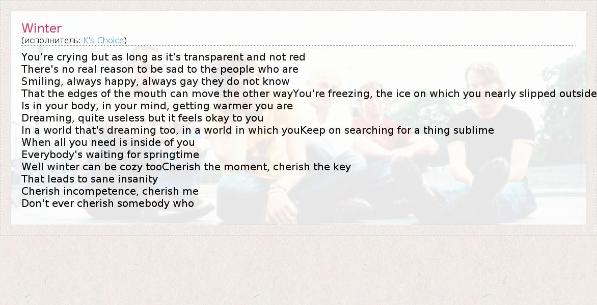 А как ты думаешь, о чем песня "Winter" ?