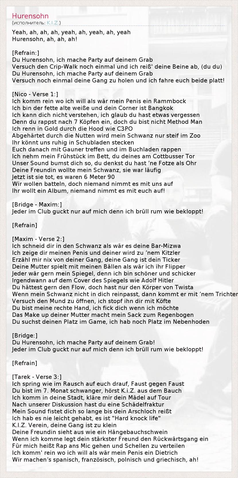 А как ты думаешь, о чем песня "Hurensohn" ?