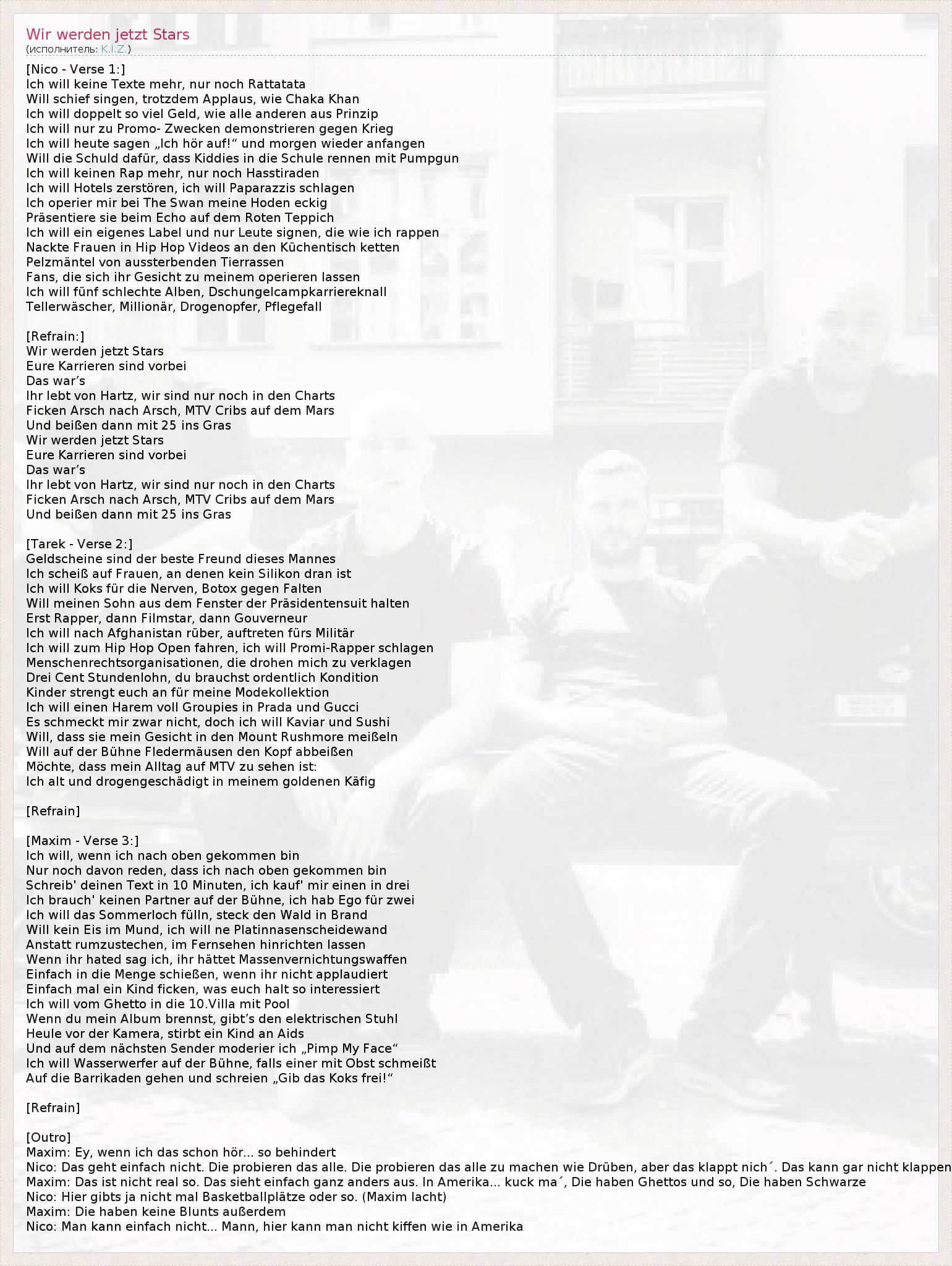 ГлавнаяИсполнителиK.I.Z.Wir werden jetzt Stars
