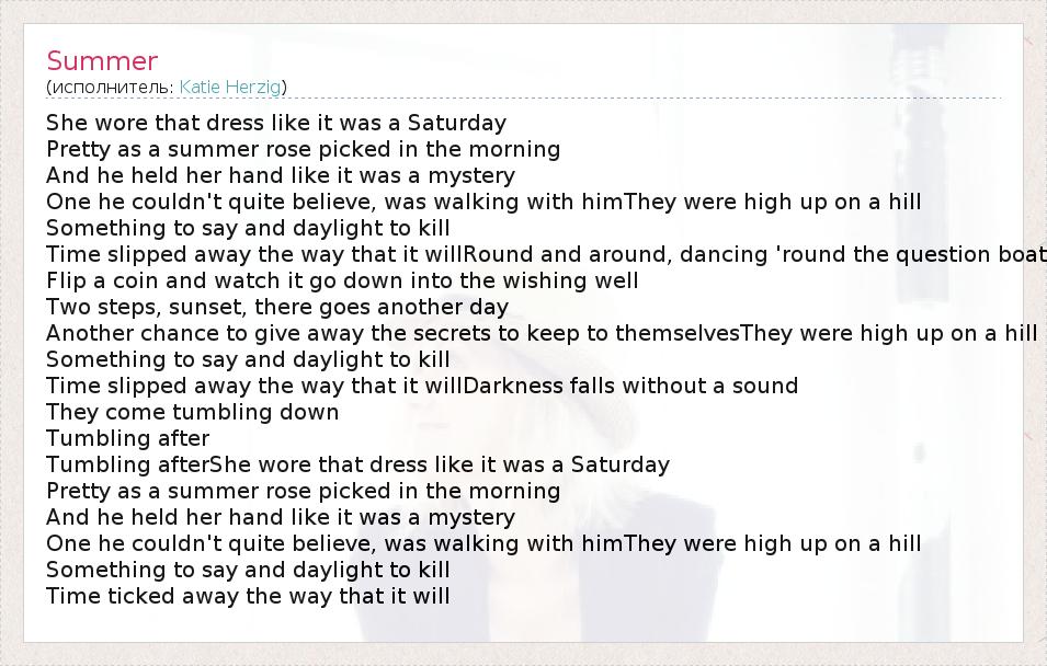 Это интересно:Кэти Херциг (Katie Herzig)Журнал «Paste» включил Кэти Херциг в список двадцати пяти молодых музыкантов, которых просто нельзя обойти вниманием. Как пишет «Paste», в альбоме «Apple Tree» уже сложившийся стиль Кэти поднимается на новую высоту. Это очень разные песни, умные и искренние, веселые, но при этом без лишних иллюзий. Журнал «Performing Songwriter» добавляет: «У нас на глазах рождается новое музыкальное... продолжение