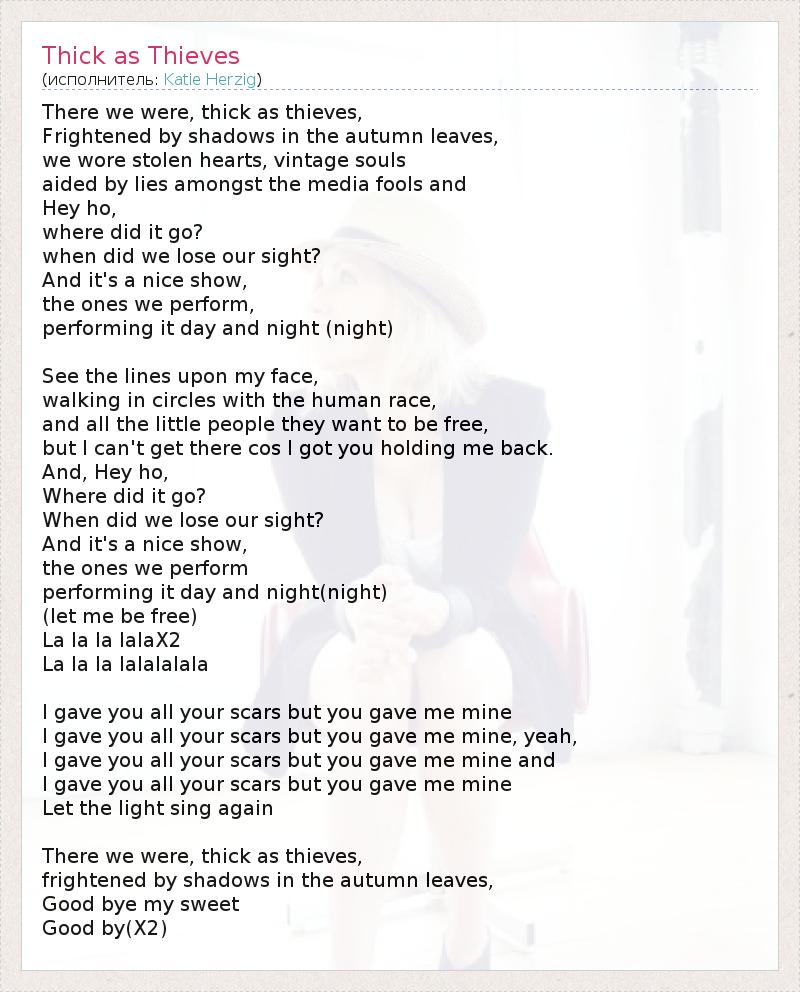 А как ты думаешь, о чем песня "Thick as Thieves" ?