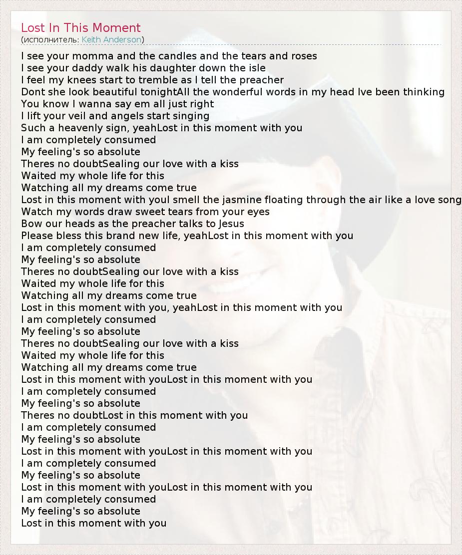 А как ты думаешь, о чем песня "Lost In This Moment" ?
