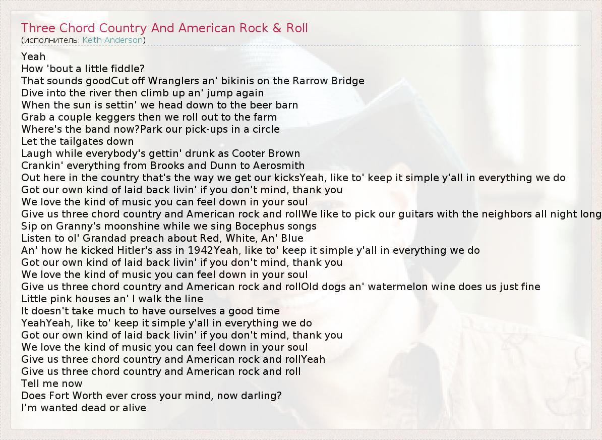 А как ты думаешь, о чем песня "Three Chord Country And American Rock & Roll" ?