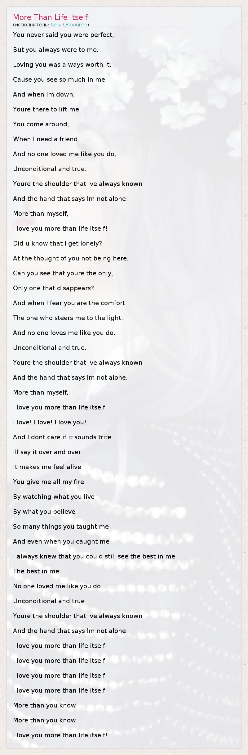 А как ты думаешь, о чем песня "More Than Life Itself" ?