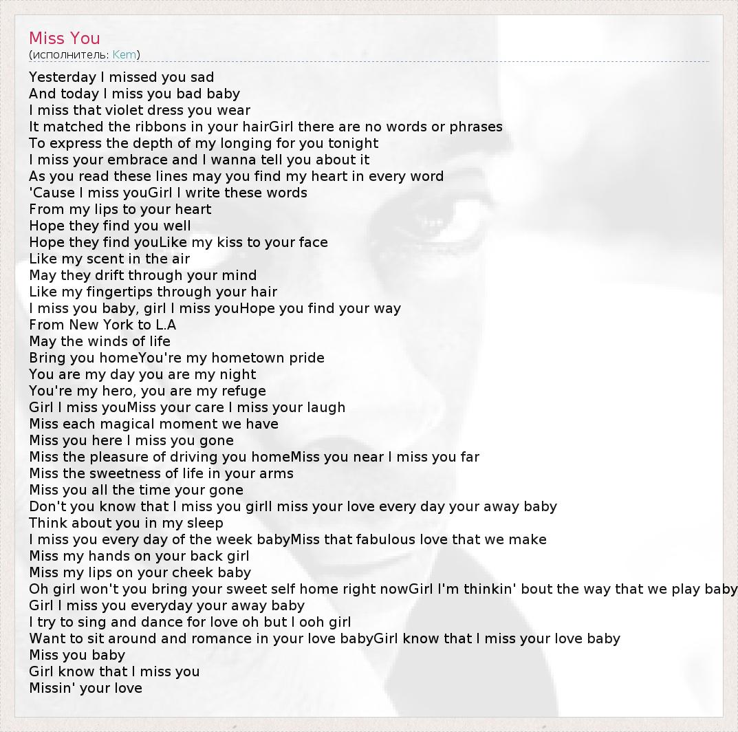 Miss the pleasure of driving you homeMiss you near I miss you far