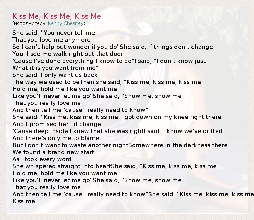 ГлавнаяИсполнителиKenny ChesneyKiss Me, Kiss Me, Kiss Me
