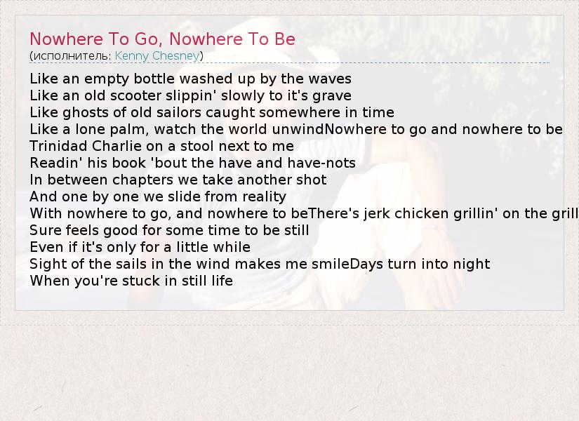 ГлавнаяИсполнителиKenny ChesneyNowhere To Go, Nowhere To Be
