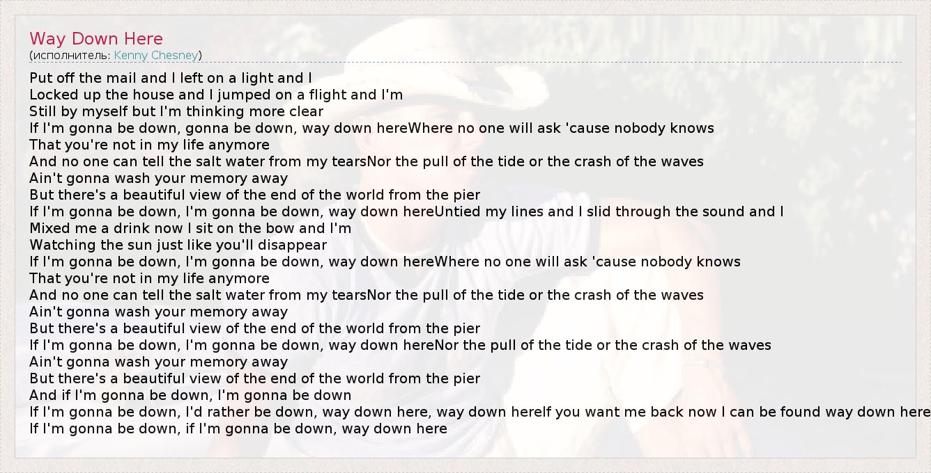А как ты думаешь, о чем песня "Way Down Here" ?