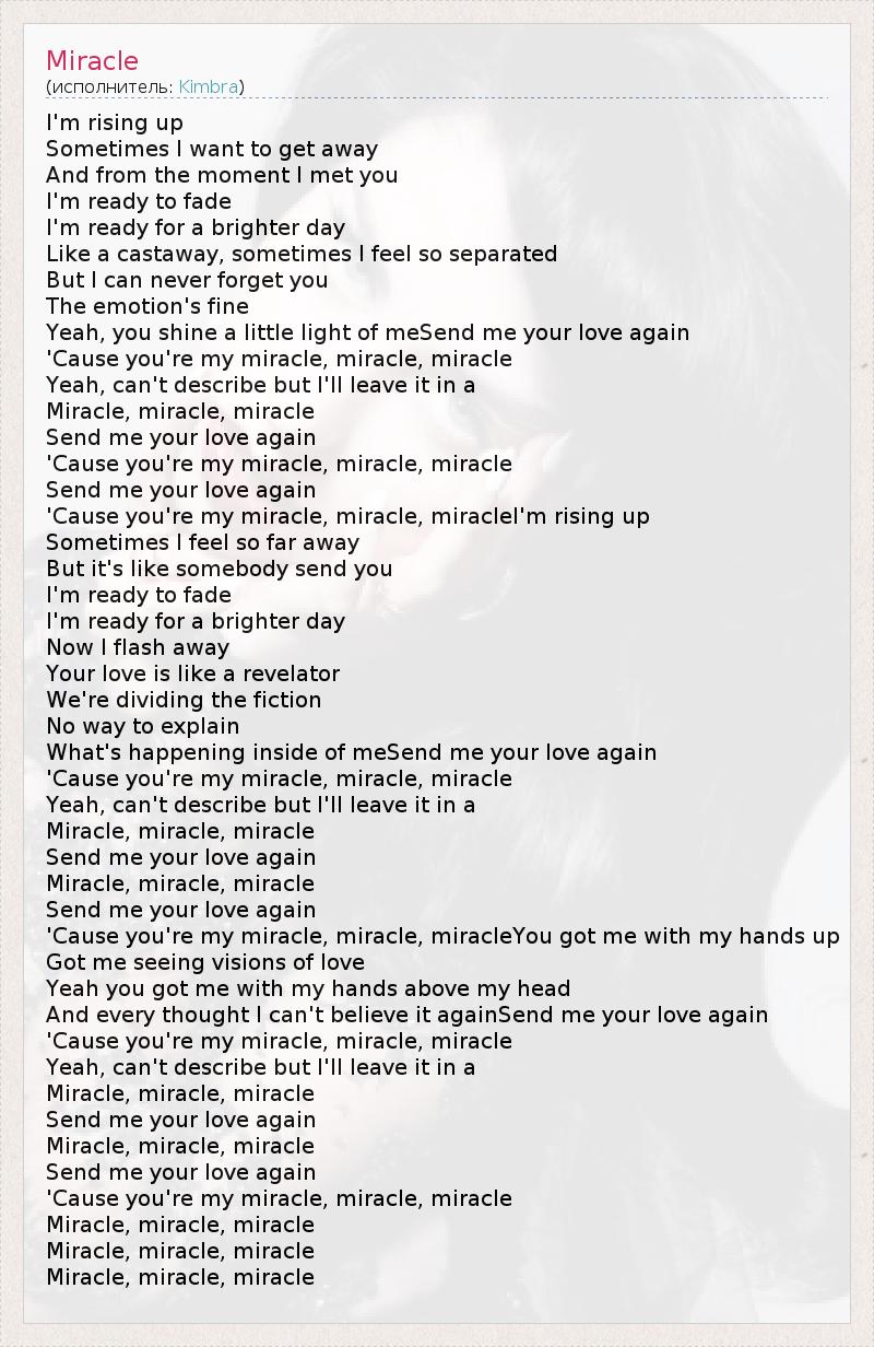 'Cause you're my miracle, miracle, miracleI'm rising up