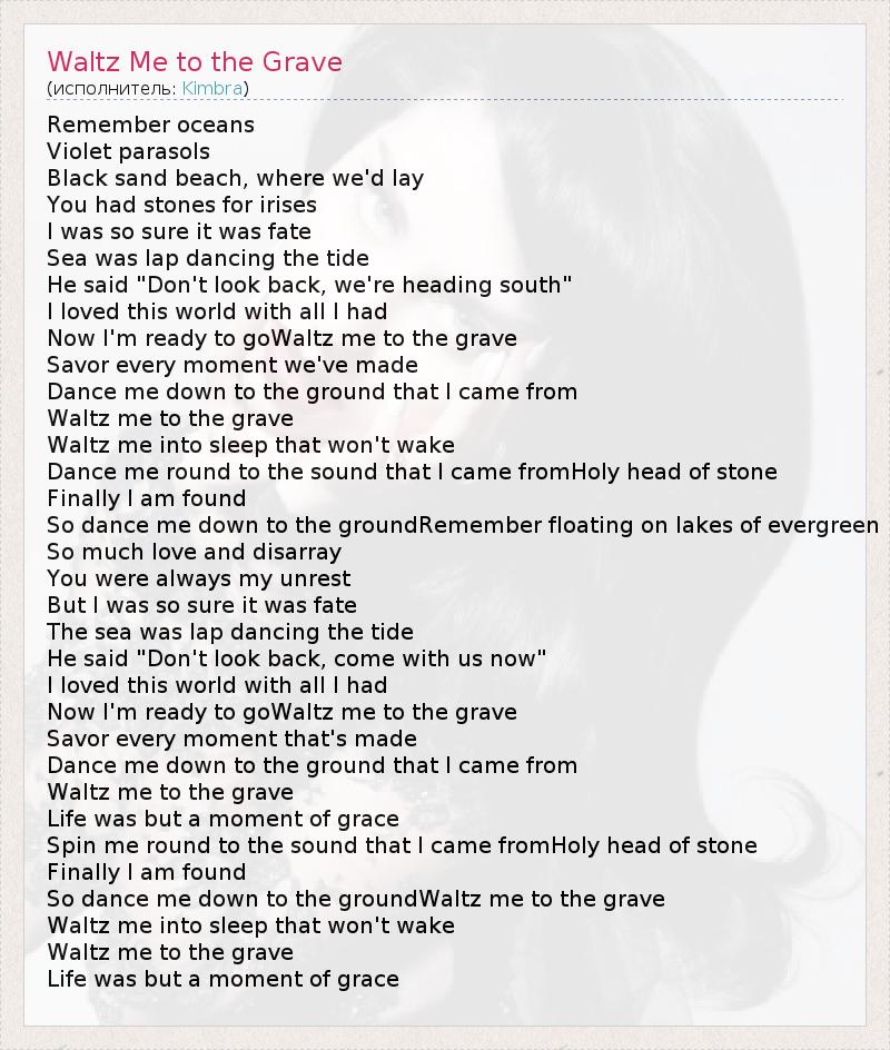А как ты думаешь, о чем песня "Waltz Me to the Grave" ?