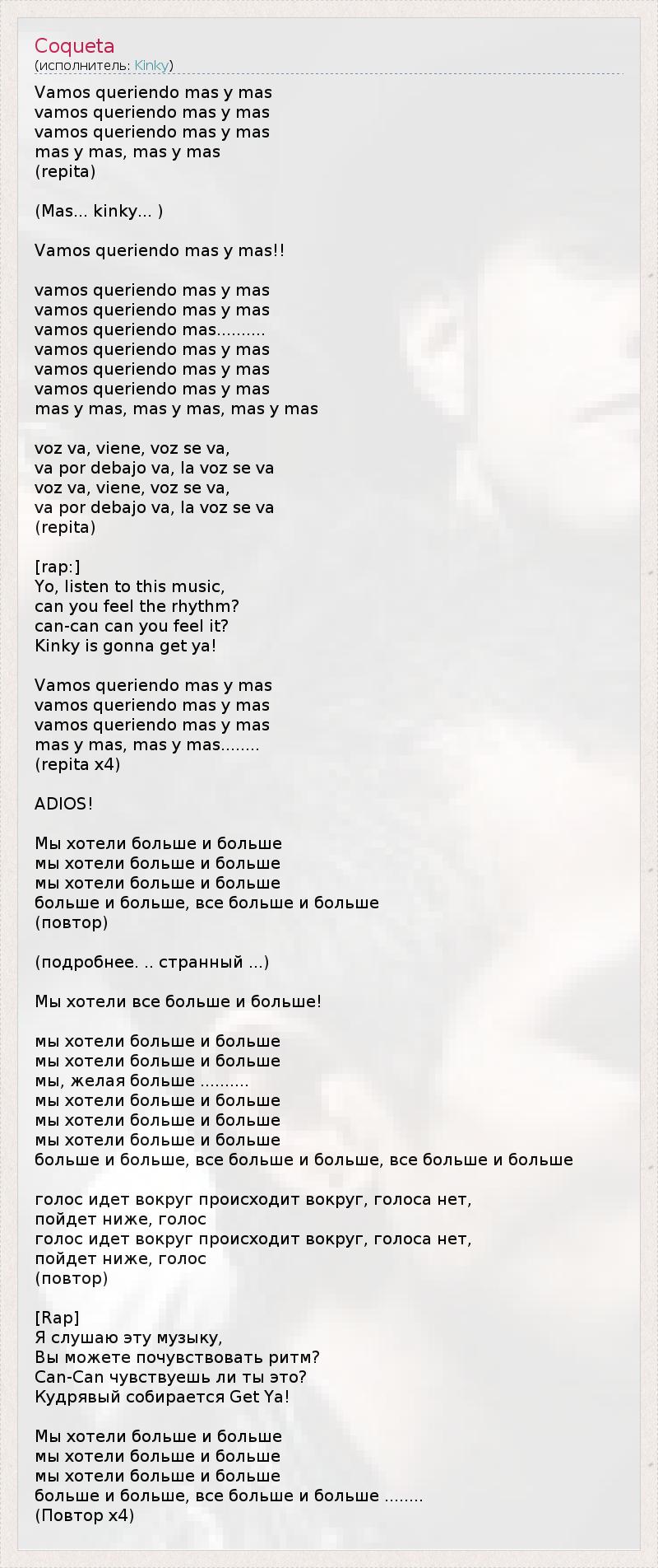 А как ты думаешь, о чем песня "Coqueta" ?