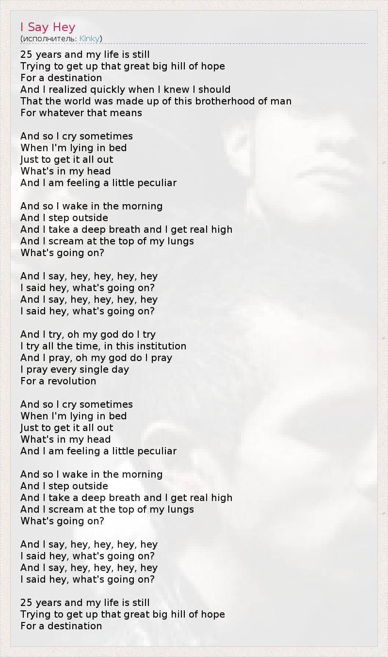 А как ты думаешь, о чем песня "I Say Hey" ?