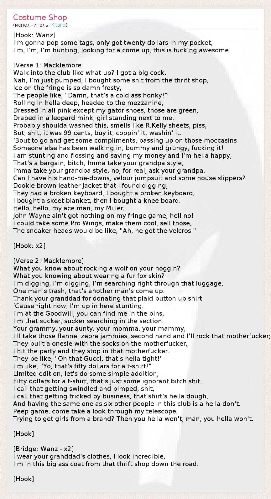 А как ты думаешь, о чем песня "Costume Shop" ?