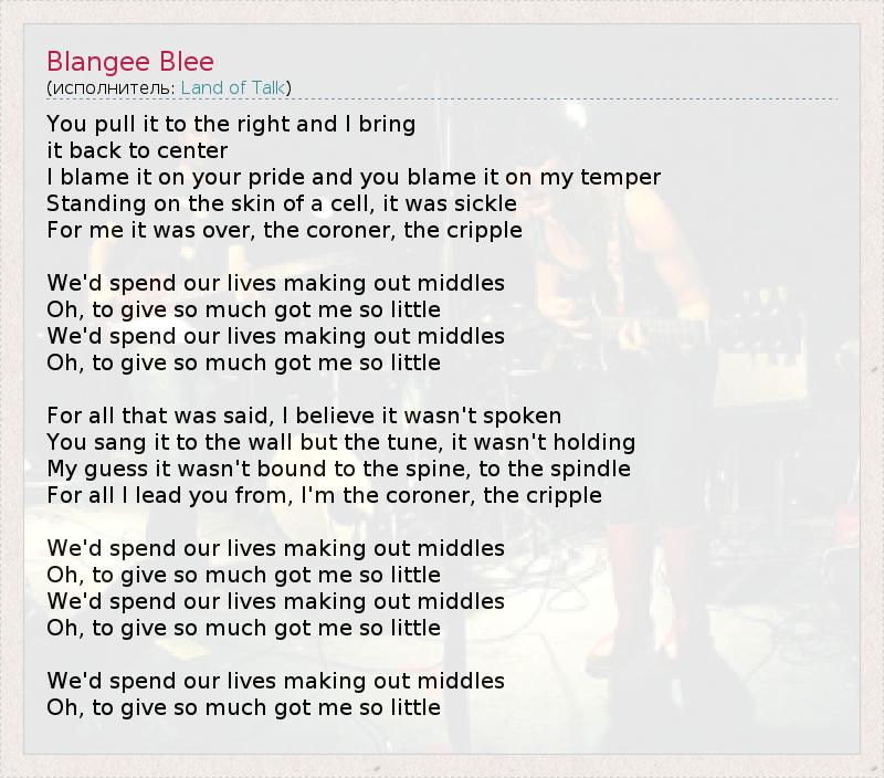 А как ты думаешь, о чем песня "Blangee Blee" ?