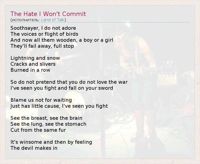 ГлавнаяИсполнителиLand of TalkThe Hate I Won't Commit