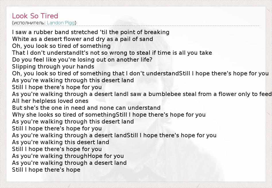 А как ты думаешь, о чем песня "Look So Tired" ?