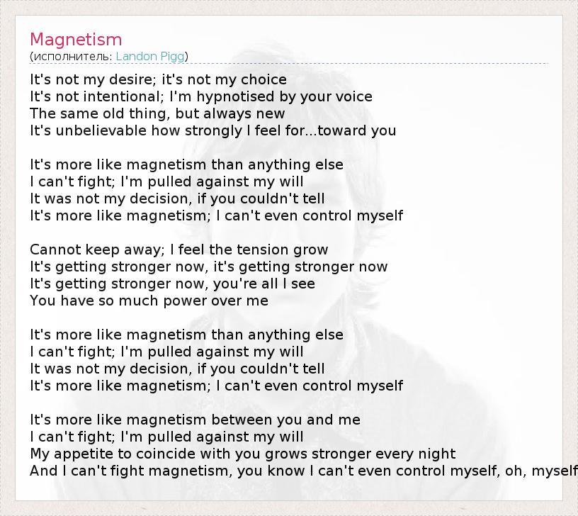 And I can't fight magnetism, you know I can't even control myself, oh, myself