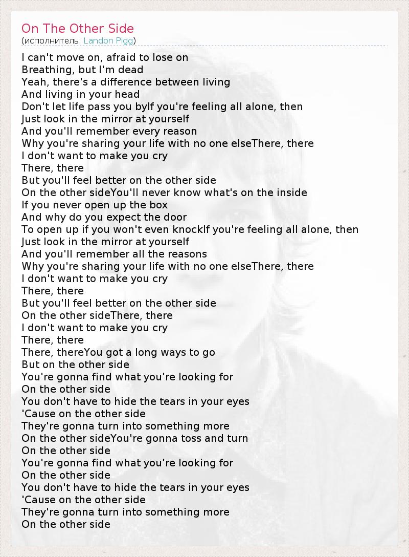 А как ты думаешь, о чем песня "On The Other Side" ?