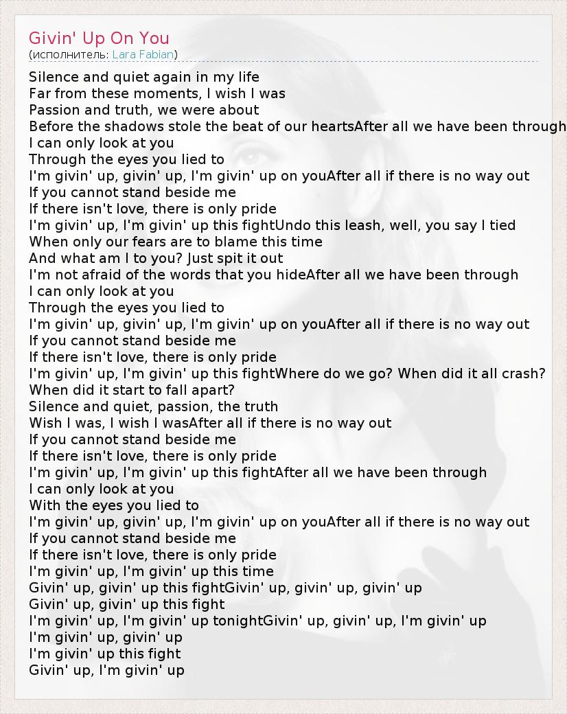 А как ты думаешь, о чем песня "Givin' Up On You" ?