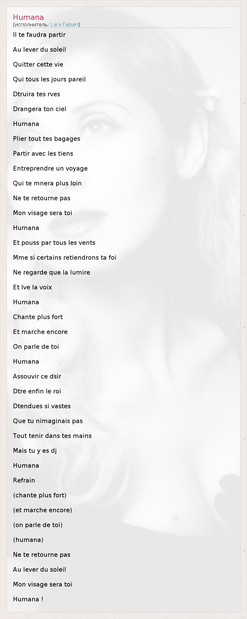Это интересно:Лара Фабиан (фр. Lara Fabian) - франкоязычная певица бельгийско-итальянского происхождения, известная сильным вокалом и хорошей техникой. Исполняет песни на французском, английском, итальянском, испанском, португальском и других языках.Дата рождения - 9 января 1970(1970-01-09)Место рождения - Эттербеек, БельгияСтрана - БельгияПевческий диапазон... продолжение