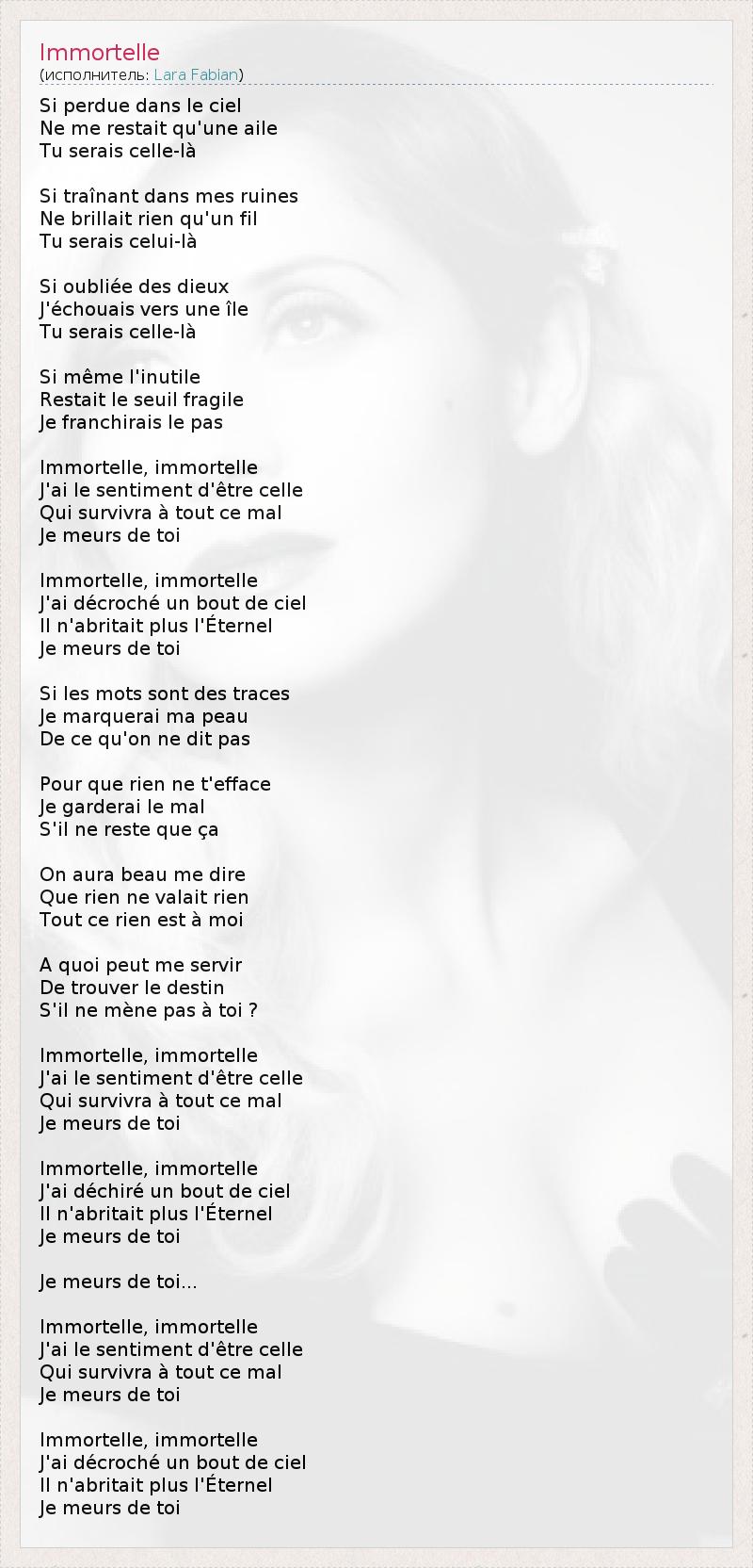 Immortelle (Бессмертная) — песня с оркестровой аранжировкой, повествующая о бессмертии души. На песню был снят клип.