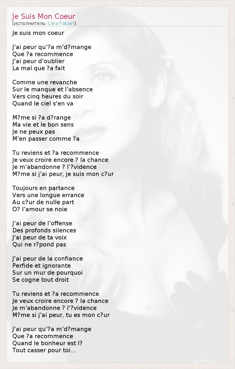 Je Suis Mon Cœur (Я — мое сердце) — еще одна пронзительная песня медленного звучания, подаренная Ларе Christine Lidon и Даниелем Лавуа.
