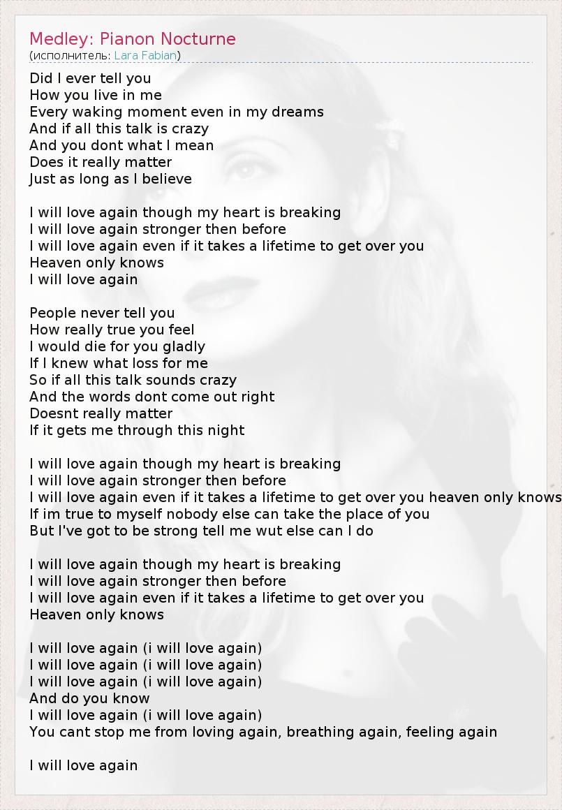 I will love again (i will love again)