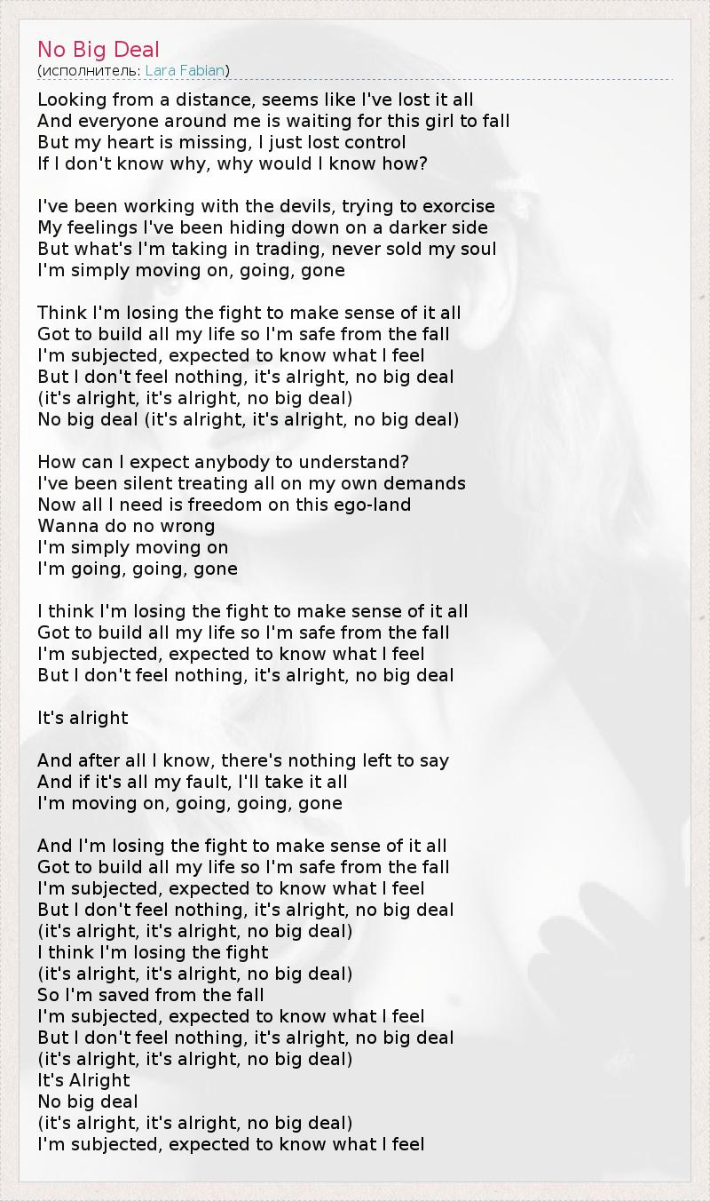 А как ты думаешь, о чем песня "No Big Deal" ?