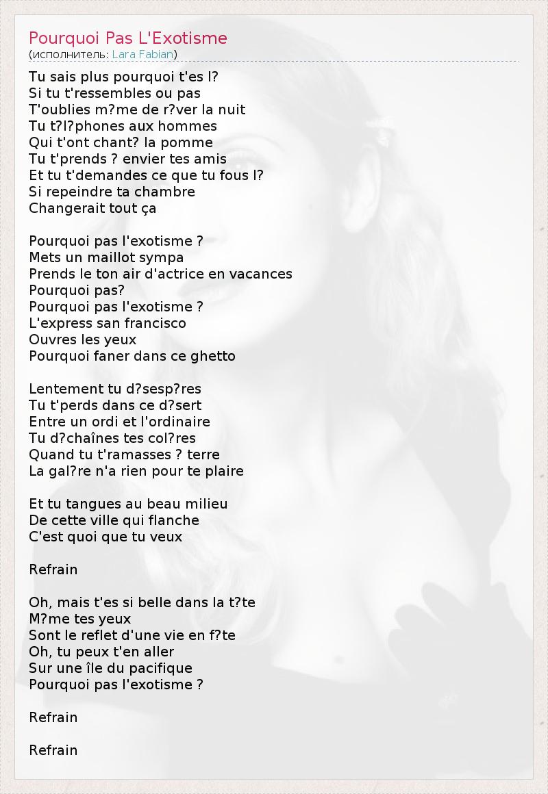 А как ты думаешь, о чем песня "Pourquoi Pas L'Exotisme" ?