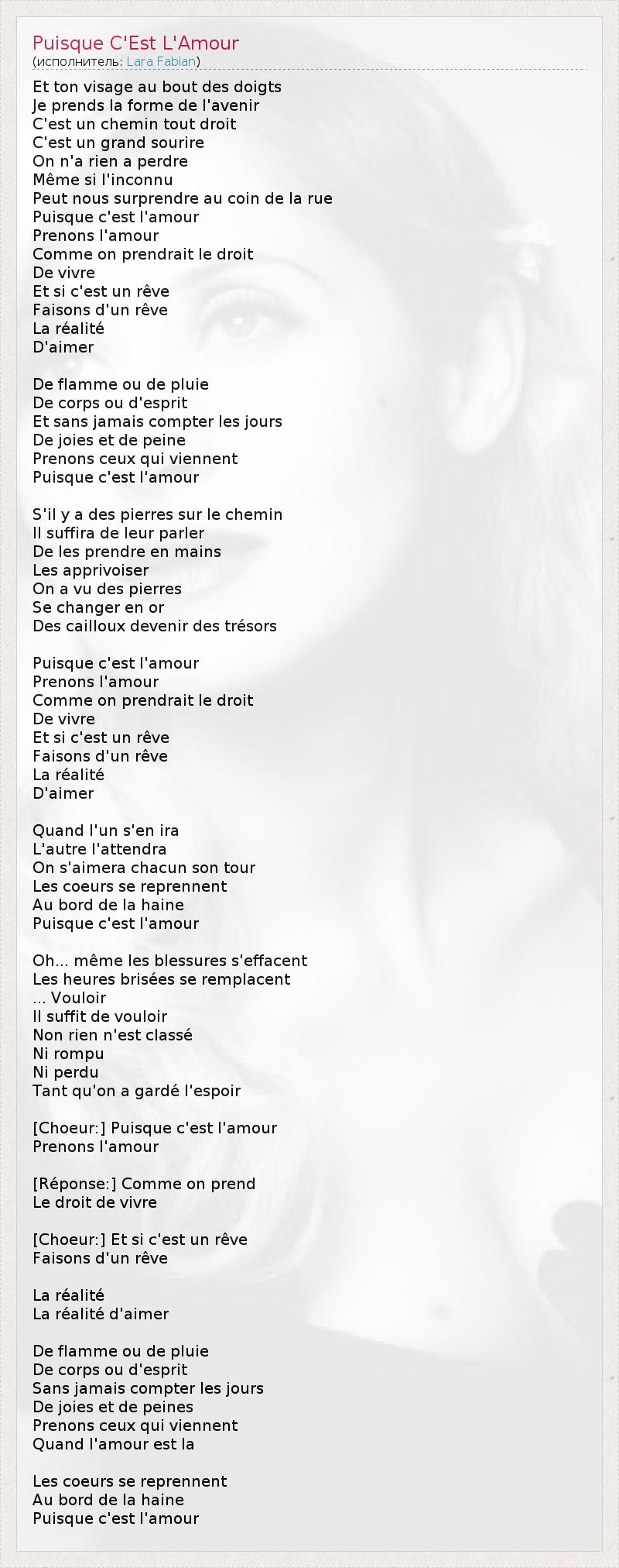 А как ты думаешь, о чем песня "Puisque C'Est L'Amour" ?