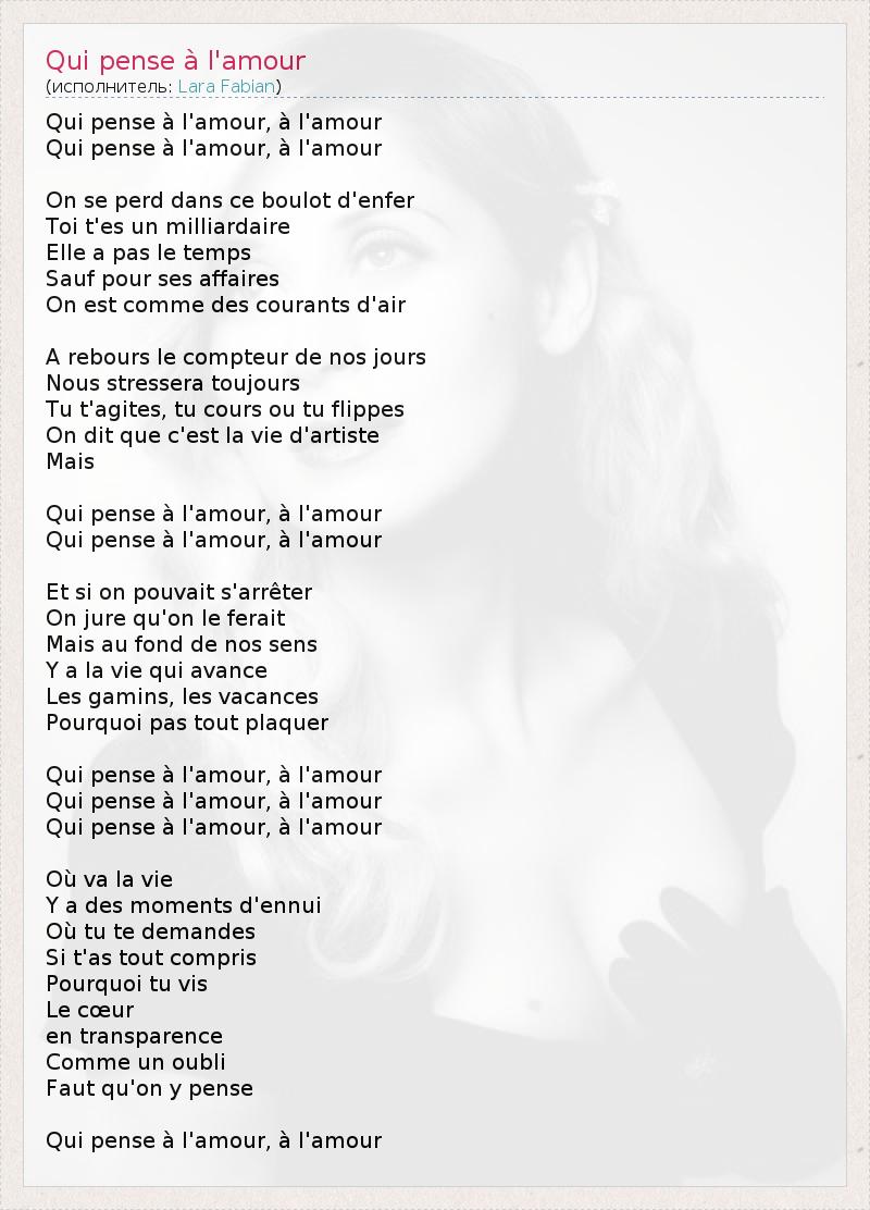 А как ты думаешь, о чем песня "Qui pense à l'amour" ?