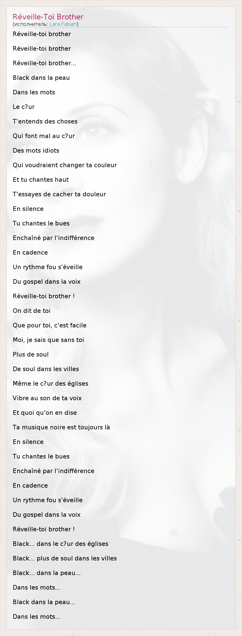 А как ты думаешь, о чем песня "Réveille-Toi Brother" ?