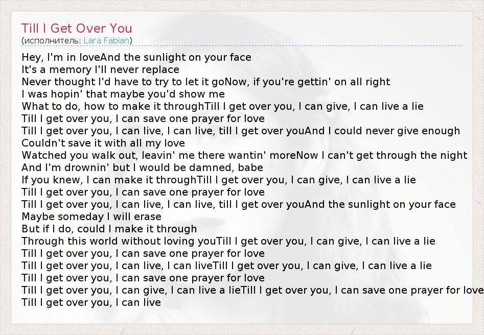 Till I get over you, I can give, I can live a lieTill I get over you, I can save one prayer for love