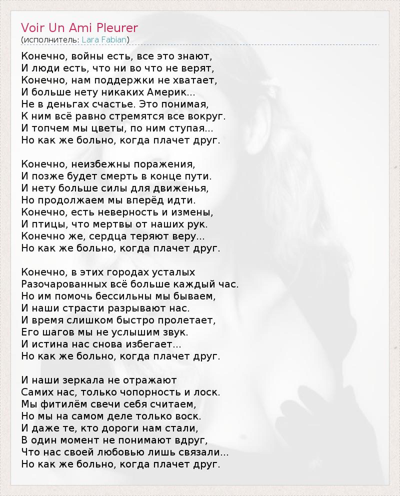 А как ты думаешь, о чем песня "Voir Un Ami Pleurer" ?