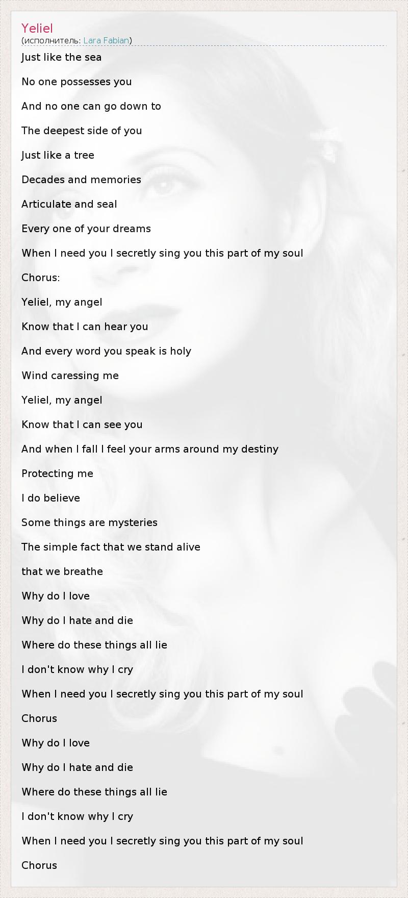 Это интересно:Лара Фабиан (фр. Lara Fabian) - франкоязычная певица бельгийско-итальянского происхождения, известная сильным вокалом и хорошей техникой. Исполняет песни на французском, английском, итальянском, испанском, португальском и других языках.Дата рождения - 9 января 1970(1970-01-09)Место рождения - Эттербеек, БельгияСтрана - БельгияПевческий диапазон... продолжение