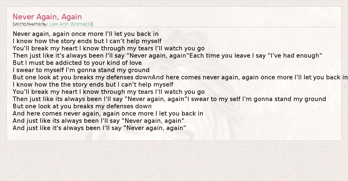 А как ты думаешь, о чем песня "Never Again, Again" ?