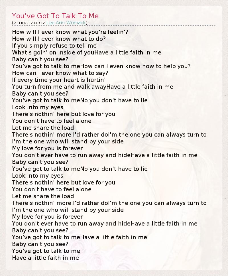 You've got to talk to meHave a little faith in me
