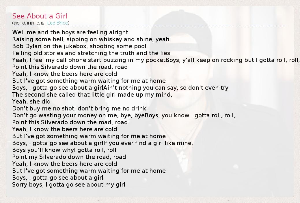 А как ты думаешь, о чем песня "See About a Girl" ?