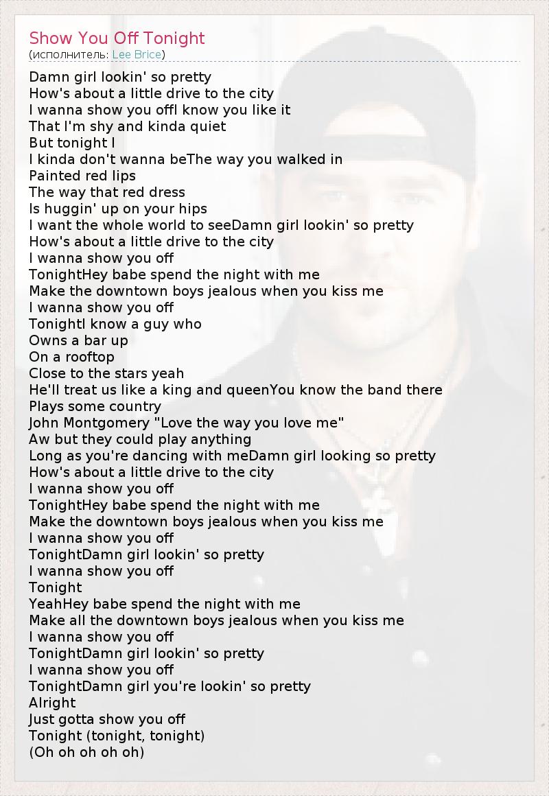 А как ты думаешь, о чем песня "Show You Off Tonight" ?