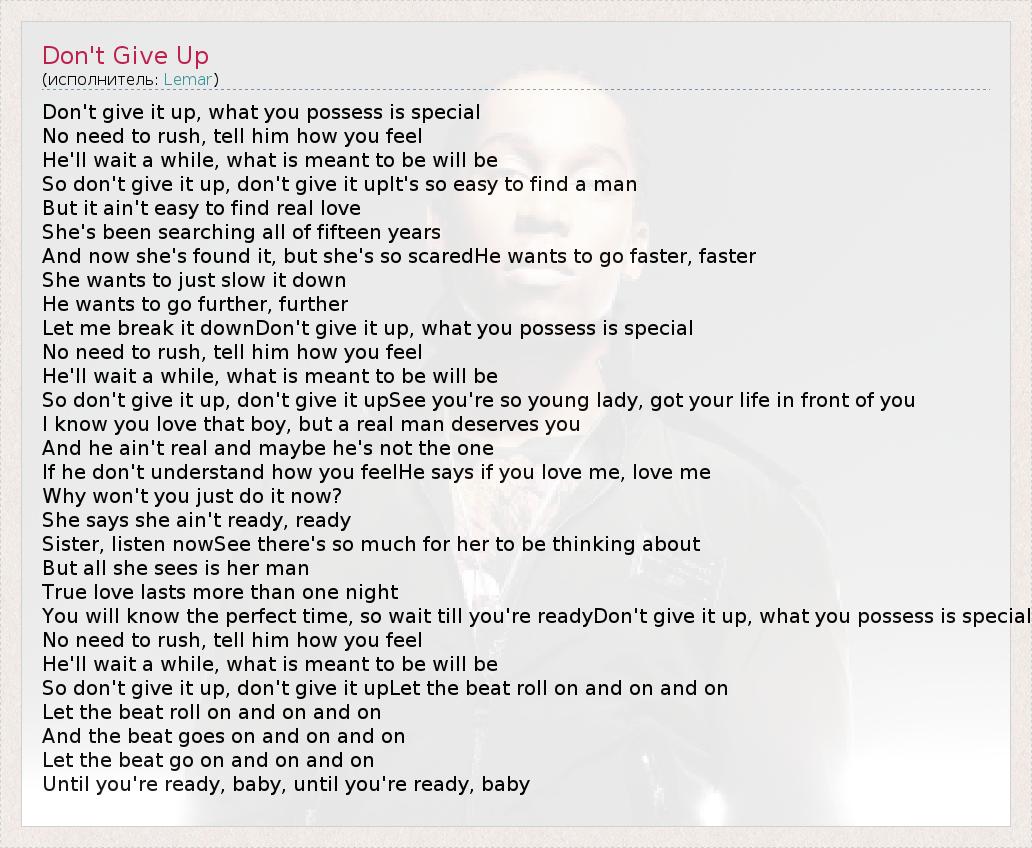 So don't give it up, don't give it upSee you're so young lady, got your life in front of you
