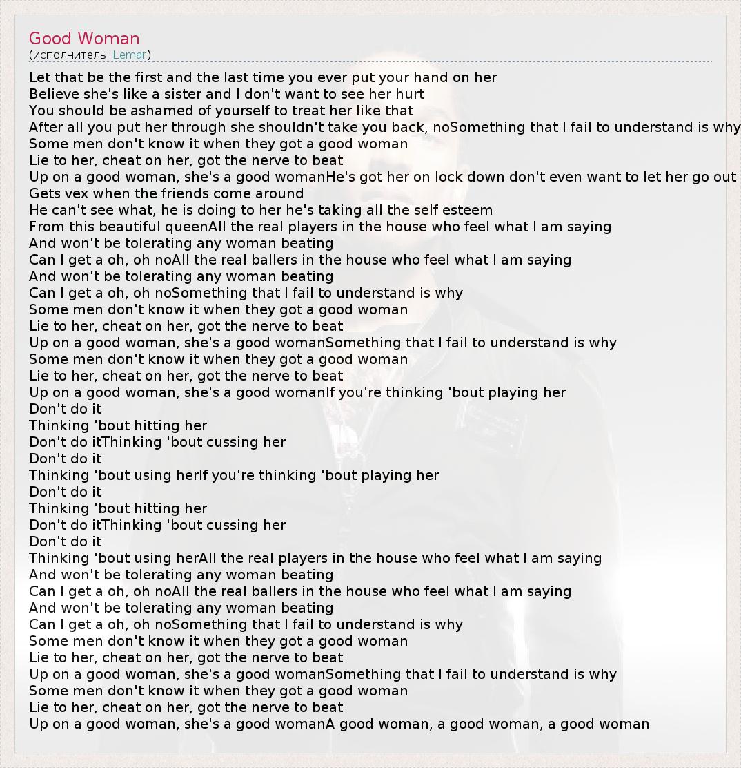 Up on a good woman, she's a good womanSomething that I fail to understand is why