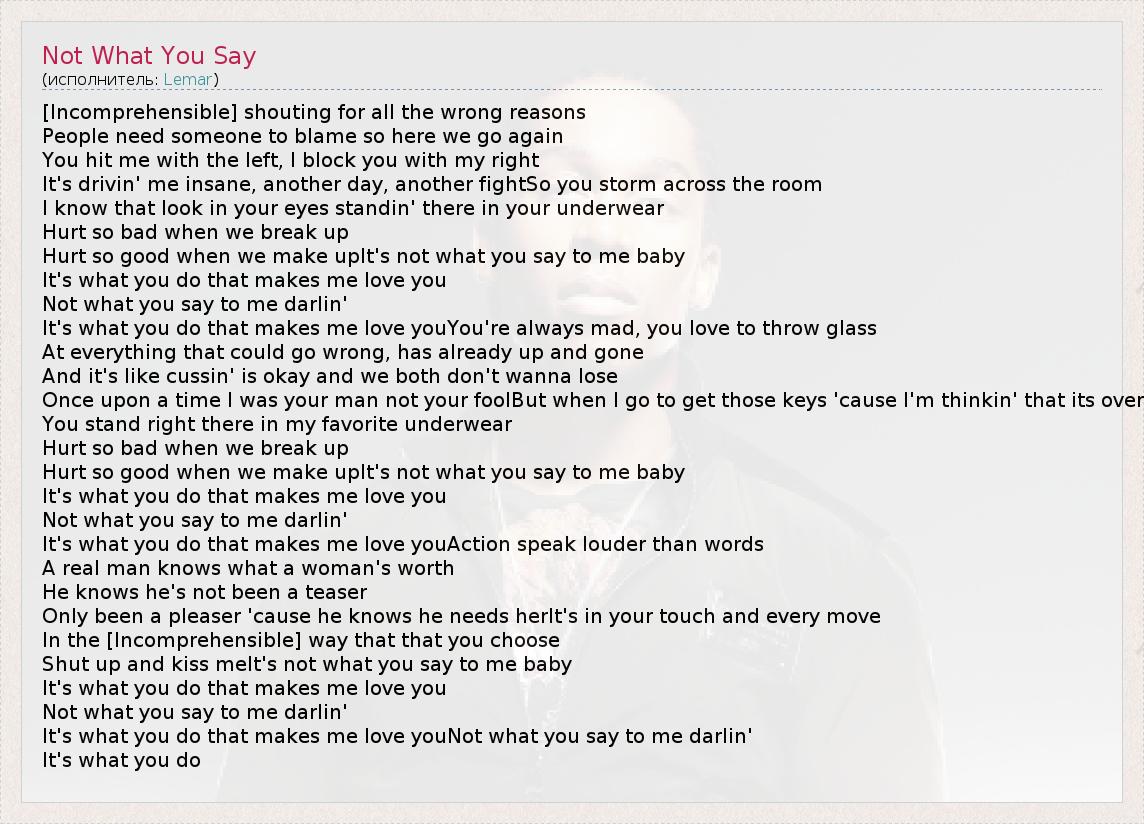 А как ты думаешь, о чем песня "Not What You Say" ?