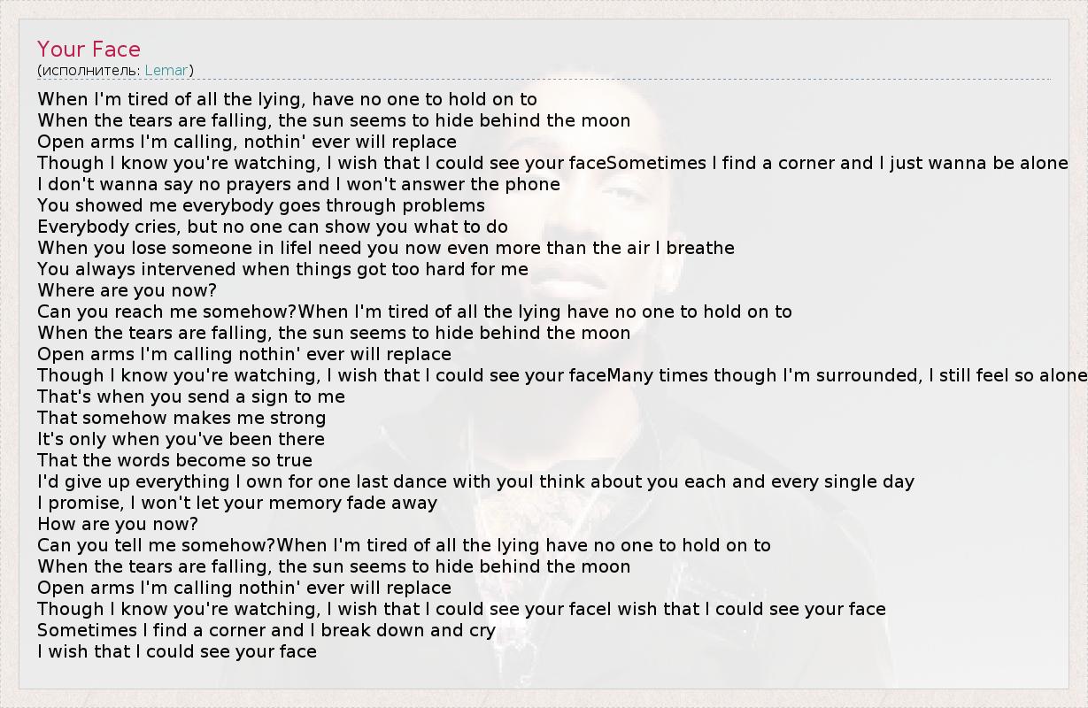 Though I know you're watching, I wish that I could see your faceMany times though I'm surrounded, I still feel so alone