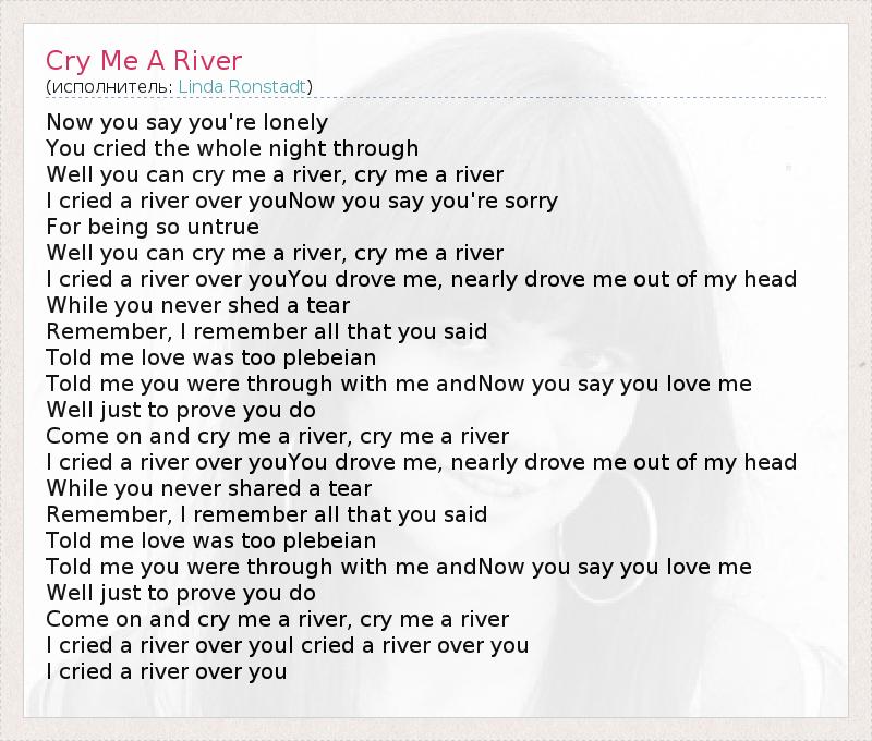 Come on and cry me a river, cry me a river
