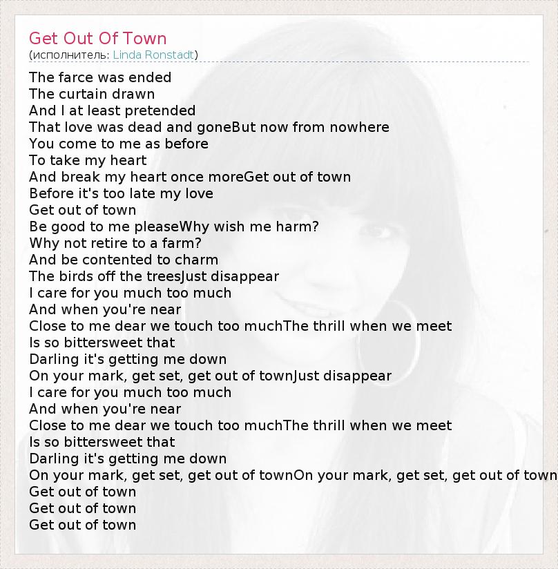 А как ты думаешь, о чем песня "Get Out Of Town" ?