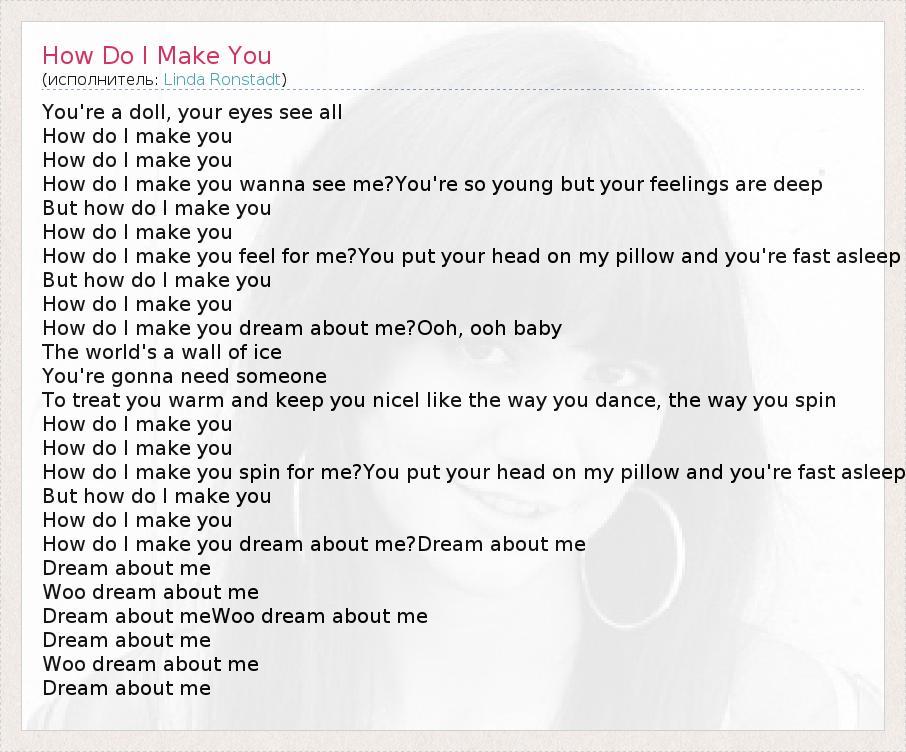 А как ты думаешь, о чем песня "How Do I Make You" ?