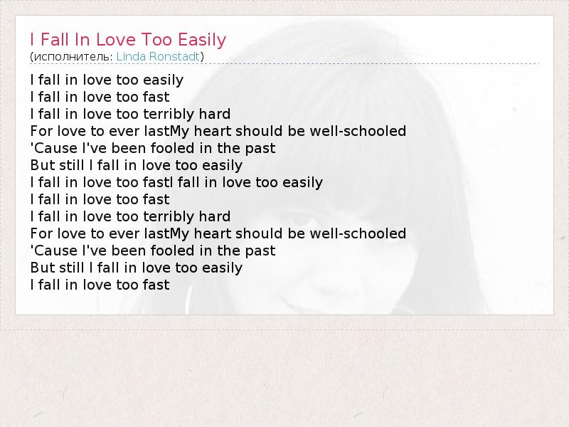 А как ты думаешь, о чем песня "I Fall In Love Too Easily" ?